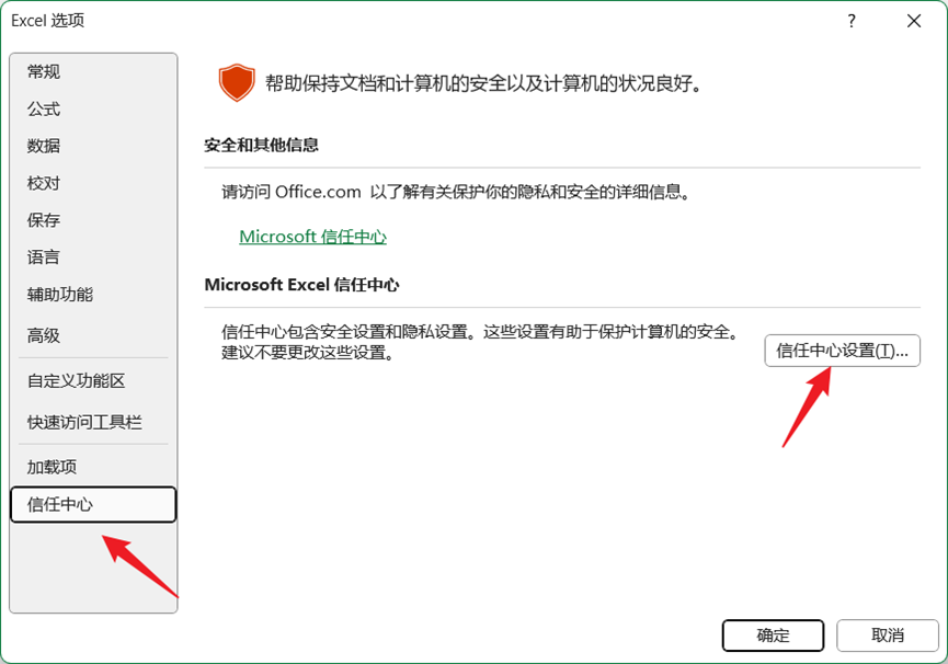 - 点击“信任中心设置…”。