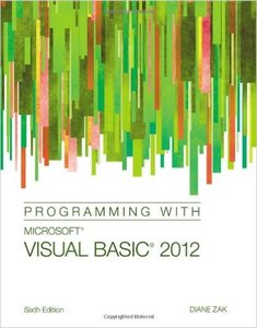 PROGRAMMING WITH MICROSOFT VISUAL BASIC 2012, 6E by best-selling author Diane Zak is the ideal choice for your introduction to programming. Readers learn to master the basics of effective programming as they work through a wealth of hands-on applications in this book’s engaging real-world setting. Numerous learning features address today’s varied learning styles with an approachable visual presentation, helpful step-by-step tutorials, and engaging “You Do It” activity boxes. Even students with no prior programming experience learn how to effectively plan and create interactive Windows applications. This edition emphasizes GUI design skills and object-oriented programming concepts throughout.