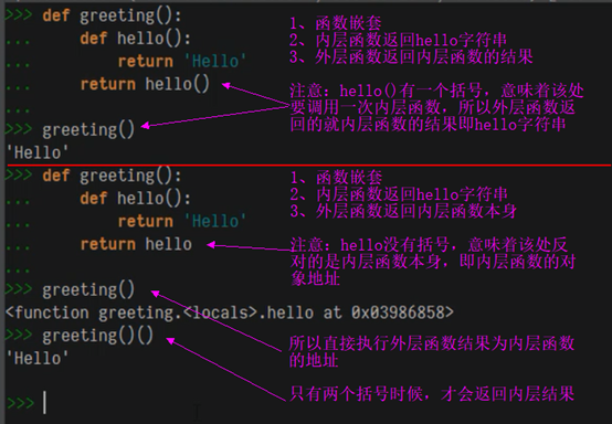 要点:返回的函数名有括号返回的是结果,没有括号返回的是对象地址