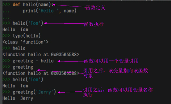函数赋值给变量:函数名可以作为参数付给变量——地址引用,变量名即函数名