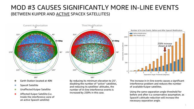 虽然此后 SpaceX 同意将轨道降至 580 公里以内,但这远远不能解决亚马逊集团的担忧。该公司认为,Starlink 选择将地面接收站角度从之前的 40° 降低到 25°,并且星链卫星数增加一倍,会大大增加两家公司卫星信号的干扰。