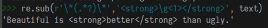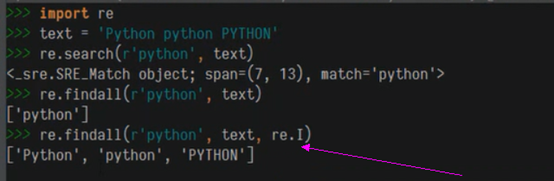 为了简单例子用了re调用,即不用模式编译方式,完整的应该是4个参数