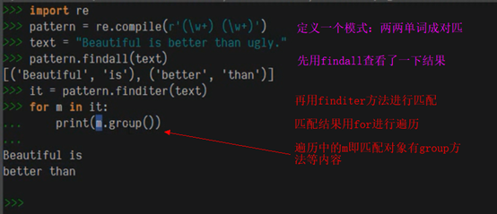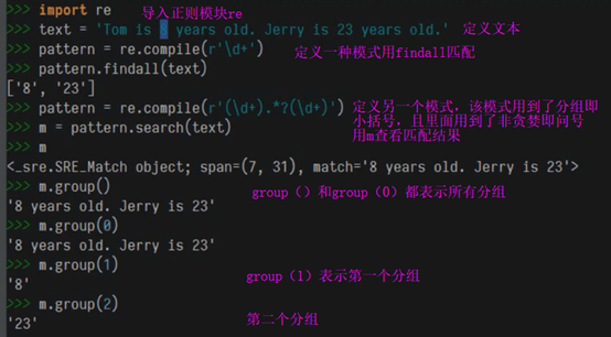 MatchObject就是模式对象,如果模式用括号进行了分组,MatchObject可以用group等方法进行观察细节