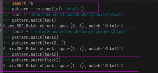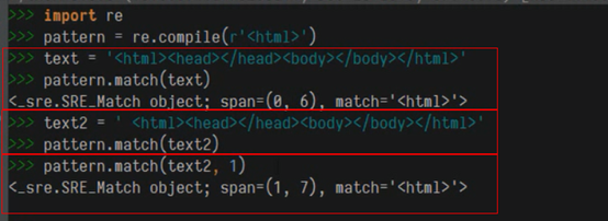 默认从第0个字符进行匹配,可以指定从哪个字符开始匹配