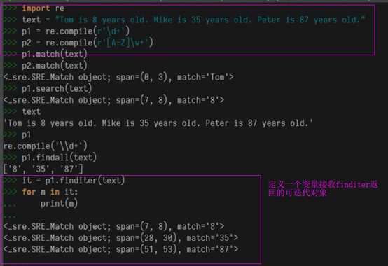 方法finditer返回迭代器对象