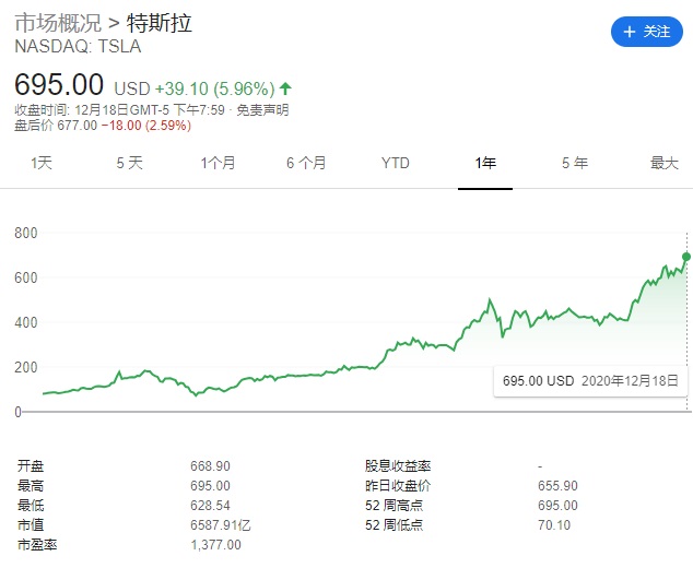值得一提的是,特斯拉今日市值再涨 5.96%,已来到 6587.91 亿美元,今年累计涨幅约 731%,下周一将正式被纳入标普 500 指数。