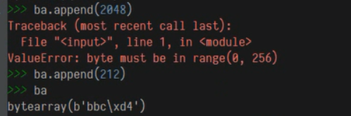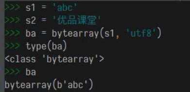 (1)字符s1存入字节数组中,利用bytearray(字符串,编码)