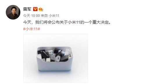 而就在今日10点,雷军称,将会公布关于小米11的一个重大决定。并配了一张”闲置充电器”的图片。