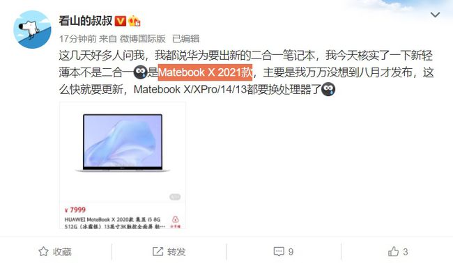 今晚,数码博主 @看山的叔叔更新消息,称华为还将推出MateBook X 2021 款,另外 MateBook 13 和 14 也都将更换处理器。