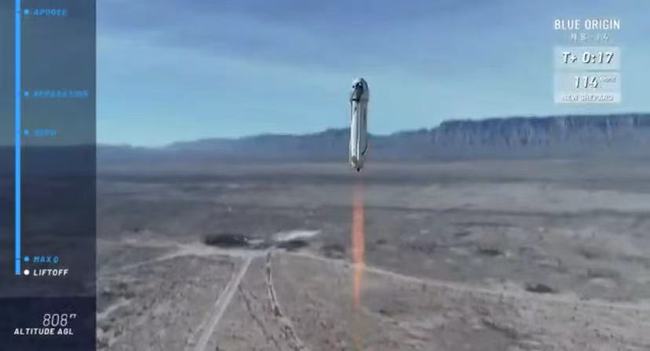 试飞时从乘员舱内看到的太空景色。 视频来源:蓝色起源推特(00:14)