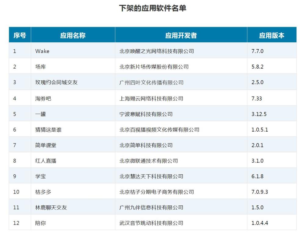 依据《网络安全法》和《移动智能终端应用软件预置和分发管理暂行规定》(工信部信管〔2016〕407号)等法律和规范性文件要求,工信部组织对上述12款APP进行下架。工信部要求,相关应用商店应在本通报发布后,立即组织对名单中应用软件进行下架处理。
