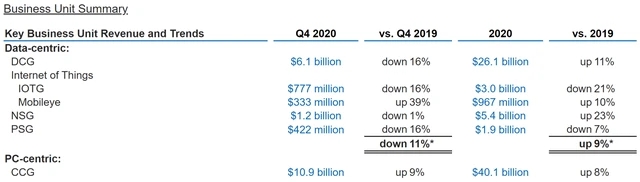 纵观英特尔财报,其数据中心事业群营收整体下跌11%,其中数据中心、物联网、可编程解决方案下滑严重,只有非可变存储解决方案(NSG)微跌1%,自动驾驶业务Mobileye上涨39%。面向PC的客户计算集团(CCG)则大涨9%。