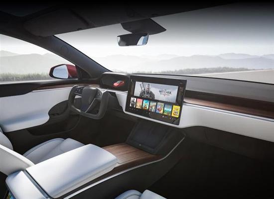 相比较外观的小幅度调整,新款Model S和Model X的内饰变化极大,尤其是全新的类赛车和游戏操作杆的方向盘造型非常吸睛。具体来看,两款新车内饰采用了与Model 3相似的横向布局设计,在视觉的营造方面极其简约时尚。同时中控台造型层次感分明,搭配木纹装饰板和织物面料,烘托出温馨素雅的内饰气氛。此外,新车配备了全新的12.3英寸液晶仪表盘,悬浮式中控屏为17英寸并采用了横向布局,同时分辨率提升至2200×1300显示效果极为细腻,此外内置的处理单元将拥有每秒10万亿次浮点运算的能力,可提供出色的游戏娱乐性能。与此同时中央扶手箱后方还配备有多媒体屏幕,丰富后排乘客的娱乐体验。
