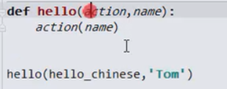 定义一个调用函数,hello中的action就是要传递函数名称/lambda表达式
