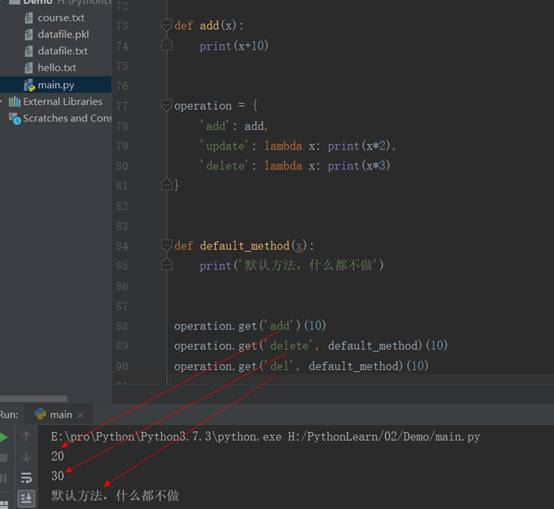 实现多重分支(Python没有switch) 可以通过配合字典表进行操作