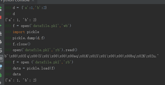 ②Python准备了一个模块pickle(音译皮克乐):可以直接存储和读取本地的python类型对象