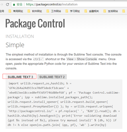打开网站:https://packagecontrol.io/installation