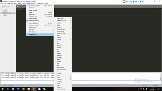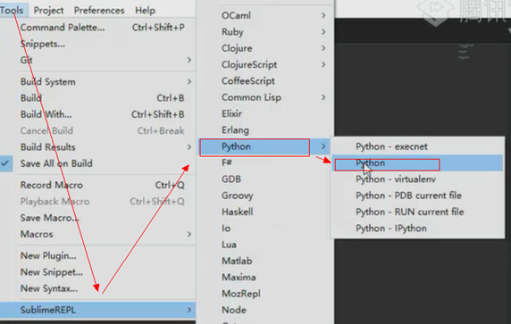 安装成功后可以在tool下面看到SublimeREPL