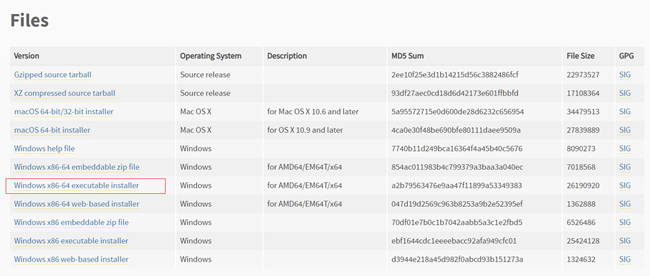 –executable installer:程序安装。下载的是一个exe可执行程序,双击进行安装。