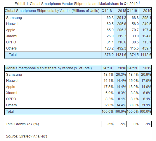 华为、OPPO、vivo和小米等中国厂商将率先面临挑战。Strategy Analytics预计,2020年上半年它们将在中国国内市场面临需求下滑的风险,同时海外市场的扩张也会受到产能和旅行禁令的影响。苹果等国际品牌也会受到产能不足的困扰和中国市场需求下滑的风险。