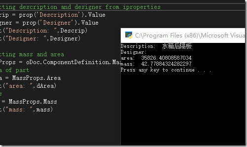 prop = oApp.ActiveDocument.PropertySets.Item("Design Tracking Properties")# 获取部分 iproperties