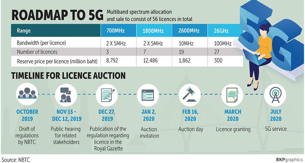 国家广播和电信委员会(NBTC)秘书长塔科恩坦塔西特(Takorn Tantasith)曾表示,该监管机构的目标是在2600MHz和26GHz频段拍卖中获得430亿泰铢的收益,他也承认700兆赫和1800兆赫的范围可能对主要运营商缺乏吸引力。