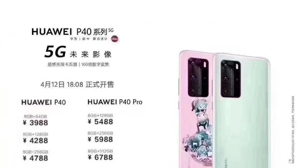 据这位网友介绍,相关信息来自华为线下渠道代理商。从截图来看,华为P40 8+64GB售价为3988元,8+128GB售价为4288元,8+256GB售价为4788元;华为P40 Pro 8+128GB售价为5488元,8+256GB售价为5988元,8+512GB售价为6788元。该机将于3月26日正式发布并于4月12日正式发售。