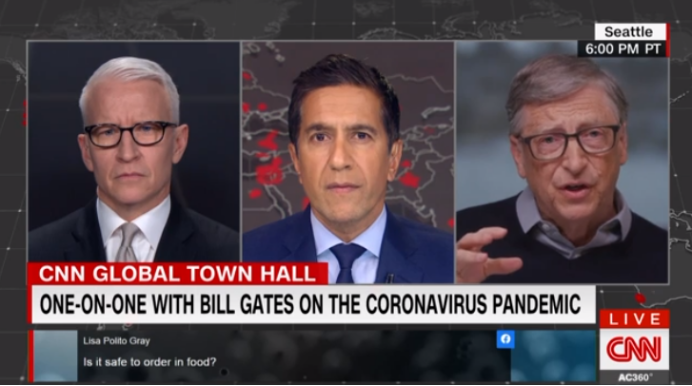 (盖茨当晚参加CNN《全球市政厅》节目视频截图)