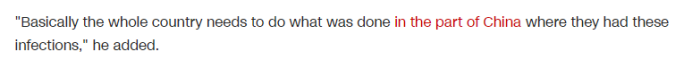 “基本上,整个国家都要采取中国那些出现感染(病例)地区之前所采取的那些措施。”盖茨说道。