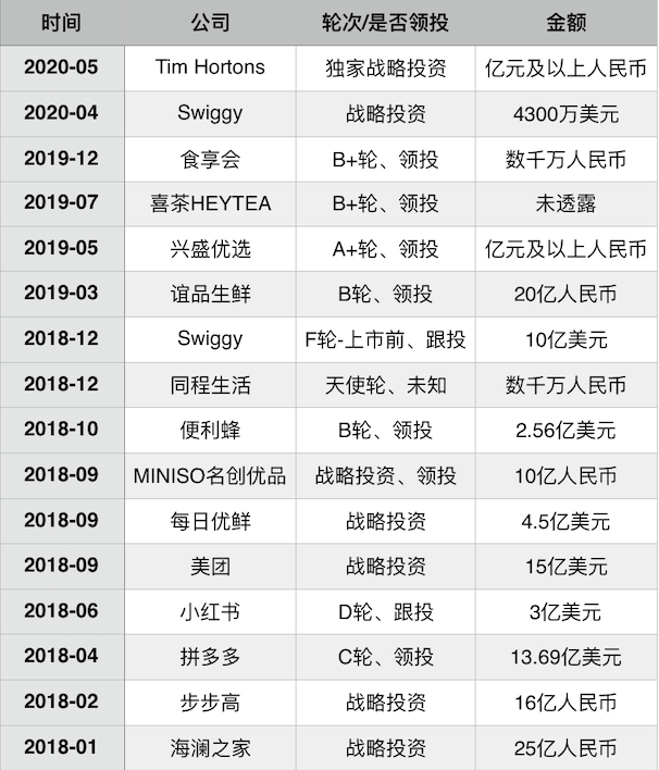2018年至2020年腾讯本地生活(电商、外卖平台、消费品牌)主要投资,制图:36氪