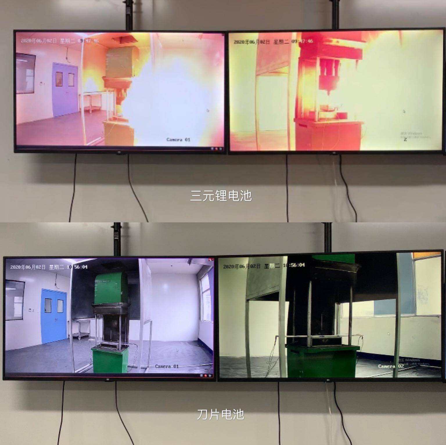 未来汽车日报参观工厂时,比亚迪在现场做了一次针刺实验。未来汽车日报(ID:auto-time)观察到,三元锂电池被针刺后,0.5秒内就会发生剧烈的放热反应,瞬间起火爆炸。刀片电池被刺后出现冒烟情况,但没有起火和爆炸。