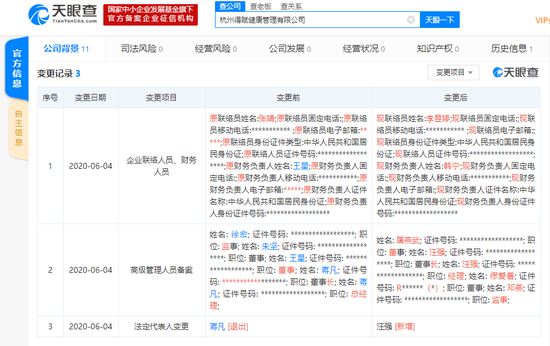 6月15日消息,天眼查数据显示,近日,杭州得赋健康管理有限公司发生工商变更,蒋凡退出该公司法定代表人、董事长、总经理,由汪强接任法定代表人、董事长、经理。此外,朱坚、王星退出董事行列,新增屠燕武、缪爱善为董事。