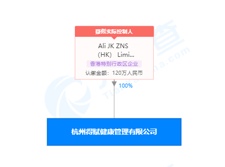 杭州得赋健康管理有限公司成立于2020年1月,注册资本120万人民币,经营范围包括健康咨询服务(不含诊疗服务);技术服务、技术开发、技术咨询、技术交流、技术转让、技术推广等。该公司由Ali JK ZNS (HK) Limited全资持股。