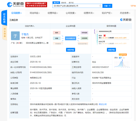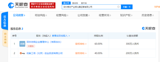 深圳梧优产业孵化器运营有限公司成立于2020年6月,注册资本500万人民币,法定代表人为于骜杰,公司经营范围包括创业投资;企业形象策划;会议及展览服务;广告设计、代理;广告发布等。天眼查股东信息显示, 深圳优桐企业管理中心(有限合伙)持股60%,为该公司最大股东。
