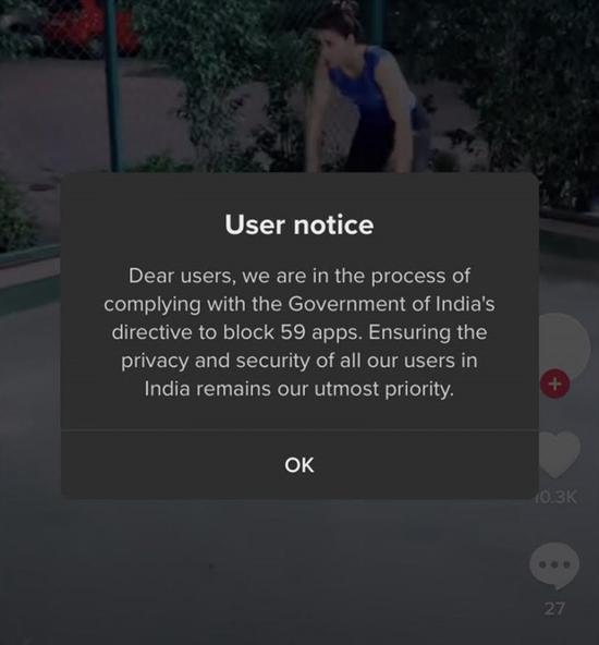 知情人士称,包括字节跳动在内的一些应用开发商已经自愿在印度暂停了用户对其应用的访问。印度政府已经邀请了这些公司的高管,为他们提供一个机会回答政府的关切。抖音海外版TikTok CEO凯文·梅耶尔(Kevin Mayer)周三表示,TikTok遵守了印度隐私和安全要求,期待与多个利益相关者会面。
