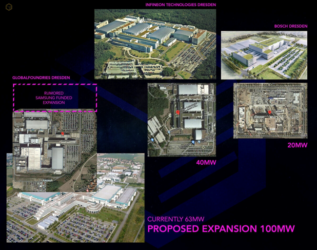 格芯位于德国的Dresden工厂正是fab1厂,其扩建的其中一项指标是电力供应配置,从63MW改造为100MW,也就是增加58%。