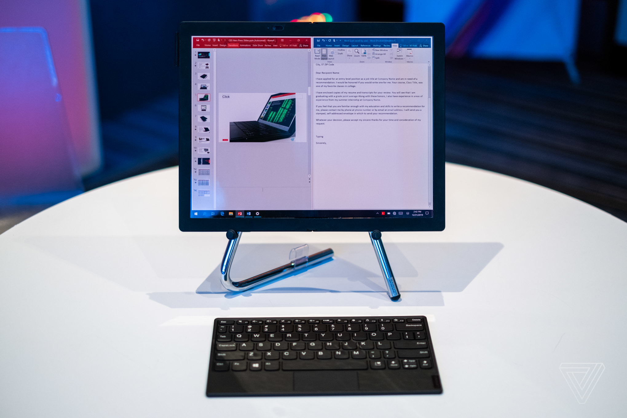 ThinkPad X1 Fold运行Windows 10 Pro,用户可以在单一全屏视图或双屏模式之间切换。在竖屏模式下,用户可以选择将整个屏幕折成一个角度,在屏幕下半部分打开虚拟键盘,像在传统笔记本上一样打字。X1还配有一个蓝牙键盘,可以磁性吸附到显示器的下半部分。另一个好处是,当屏幕折叠起来时,键盘会填补两部分屏幕折叠后留下的间隙。而在横屏状态下,ThinkPad X1 Fold的屏幕会展开到最大尺寸,用户可以使用无线键盘,获得与笔记本电脑差不多的体验。联想表示,ThinkPad X1 Fold运行在一个采用“混合技术”的英特尔新平台上,并指出设备续航时间为11小时。