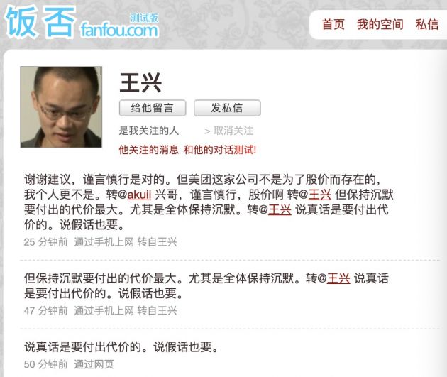 8月4日消息,据网上爆料的截图显示,美团创始人王兴今日在饭否谈及美团股价时表示,美团这家公司不是为了股价而存在的,我个人更不是。