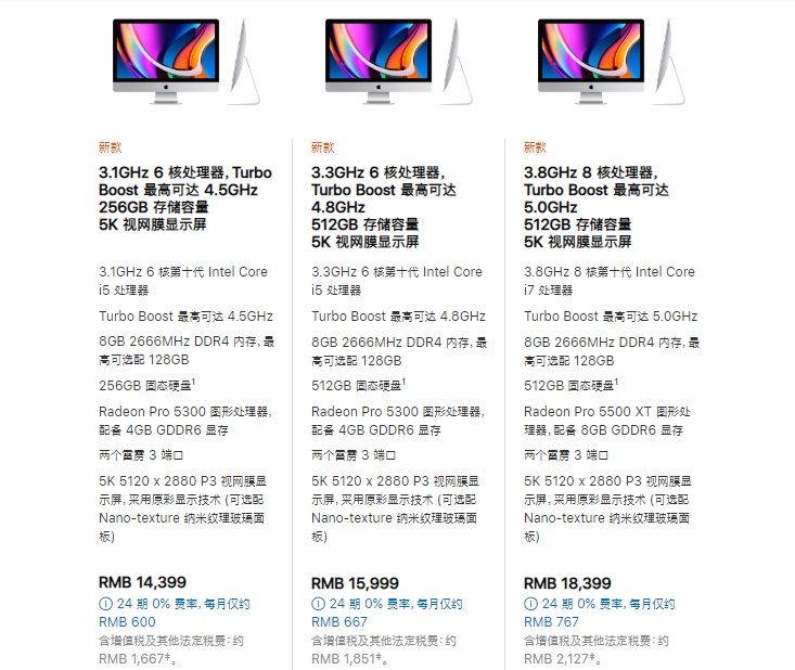 目前,苹果中国官方已经上线27英寸的新款 iMac。
