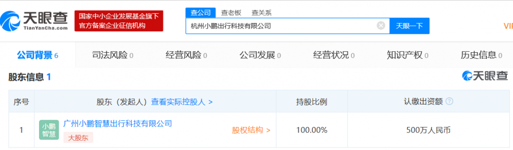 8月17日消息,天眼查APP显示,近日,杭州小鹏出行科技有限公司成立,公司注册资本500万人民币,法定代表人为朱艳华,公司经营范围包括电动汽车充电基础设施运营;智能输配电及控制设备销售;分布式交流充电桩销售;二手车经销;机动车充电销售;国内贸易代理;汽车新车销售;新能源汽车整车销售等。天眼查APP股东数据显示,该公司为广州小鹏智慧出行科技有限公司的全资子公司。