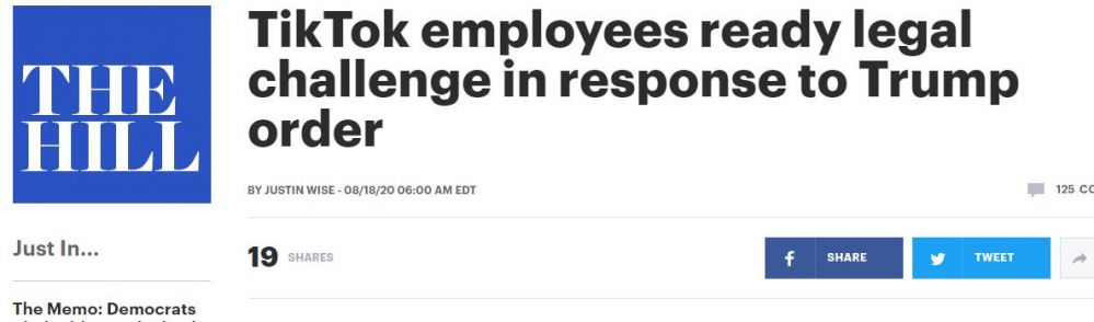 (《国会山报》:TikTok员工已准备好向总统特朗普针对TikTok颁布的禁令发起法律挑战)