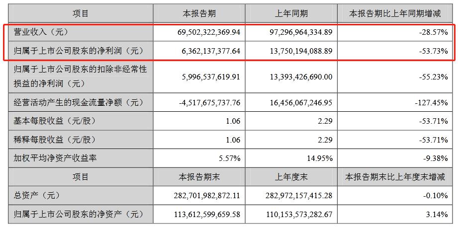 中新经纬客户端8月31日电8月30日晚,格力电器发布2020年半年报。上半年,公司实现营业收入695.02亿元,同比下降28.57%,归属于上市公司股东的净利润63.62亿元,同比下降53.73%,拟向全体股东每10股派发现金红利10元(含税)。