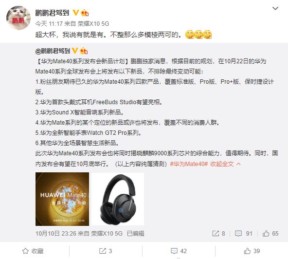 很显然,Mate 40系列是发布会的主角,但不会是唯一角色。
