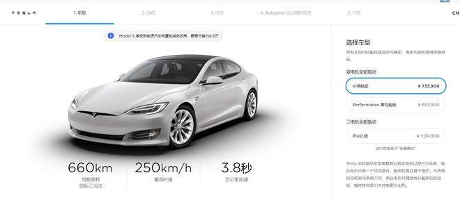 10月13日,特斯拉中国官网显示,特斯拉Model S长续航版和高性能版均降价2.3万元人民币,当前起售价分别为73.39万元和83.39万元。