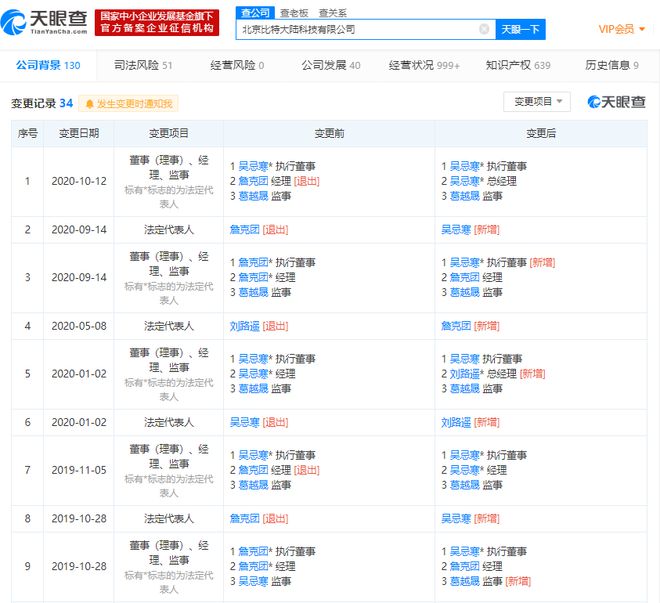 天眼查App显示,北京比特大陆科技有限公司成立于2013年10月,从2019年开始,该公司陆续发生多次工商变更,9月14日,该公司法定代表人、执行董事由詹克团变更为吴忌寒。最新的主要人员信息显示,吴忌寒担任公司执行董事、总经理;葛越晟任监事。