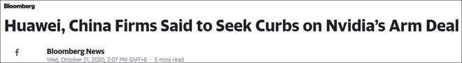 10月21日,彭博社援引知情人士报道称,包括华为在内的中国科技公司,已向中国监管部门表达了对英伟达收购ARM的担忧,这有可能导致这笔400亿美元(约合人民币2700亿元)的巨额并购告吹。