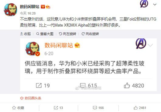 数码博主 @数码闲聊站 今日爆料了多条华为和小米新款折叠屏手机的信息。