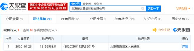 天眼查App显示,近日,人人车关联公司北京善义善美科技有限公司新增1条被执行人信息,执行法院为北京市通州区人民法院,案号为(2020)京0112执8801号,执行标的15156989.0。