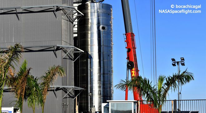 图3:星际飞船原型SN10的储罐部分被堆叠到最高高度