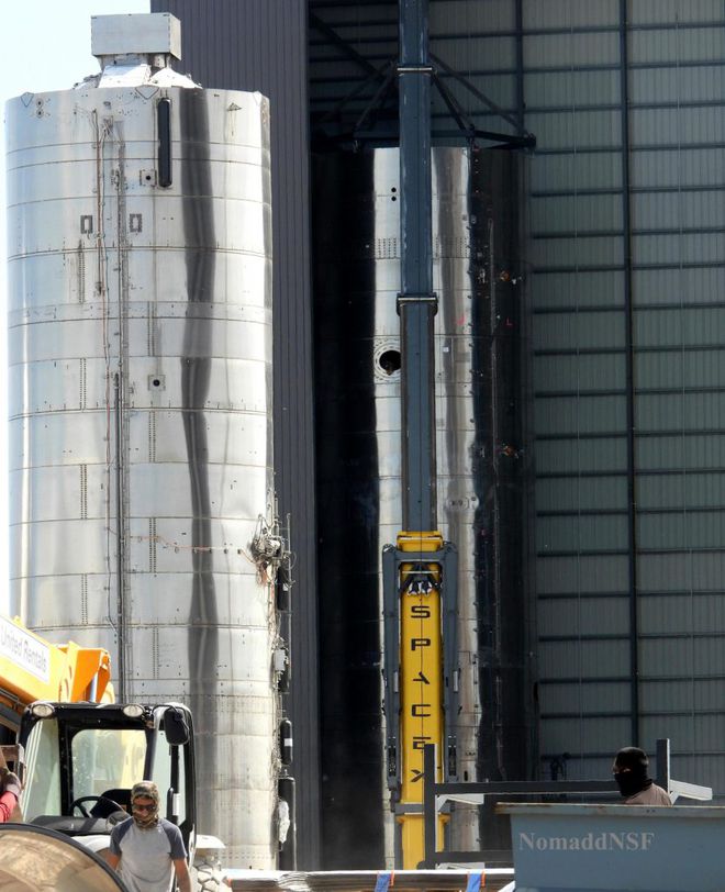 图1:SpaceX第九和第十艘全尺寸星际飞船原型正加紧组装